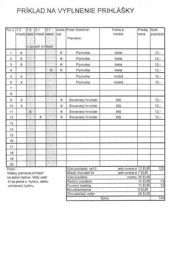 výstavný poplatok – klietkové vo výške 7 EURO miesto 12. Prihláška MCH